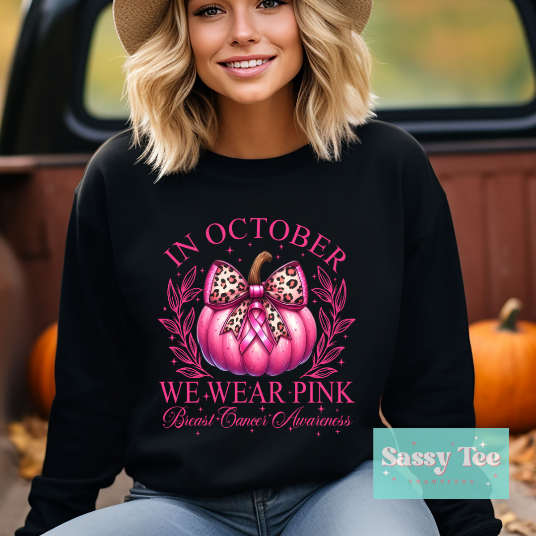 IN OCTOBER WE WEAR PINK PUMPKIN BOW COQUETTE