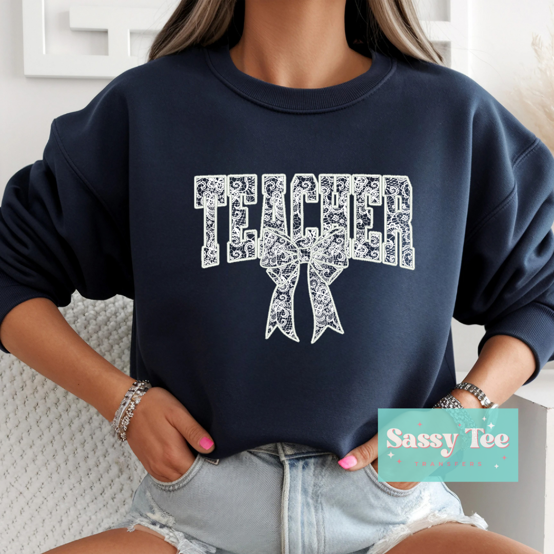 LACE TEACHER WHITE BOW **Preorder/Restock Ships in 5-10 biz days**