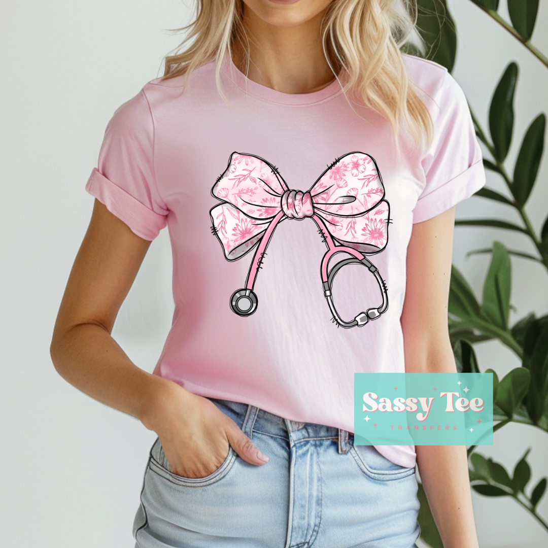 NURSE STETHOSCOPE PINK FLORAL BOW