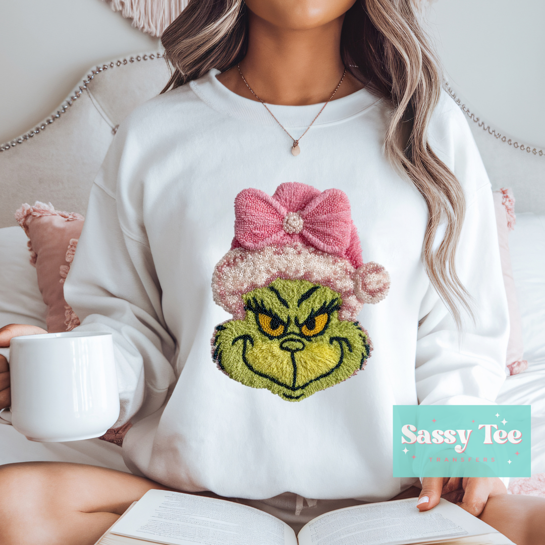 GREEN MAN FAUX YARN PINK BOW PEARLS **Preorder/Restock Ships in 5-10 biz days**