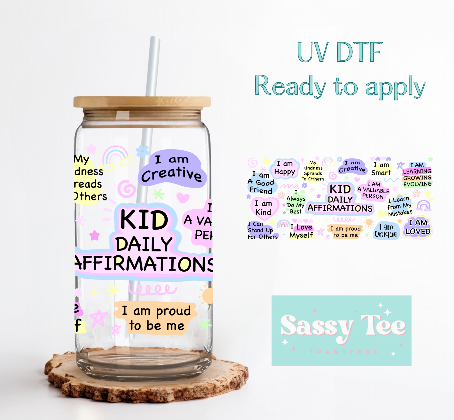KID DAILY AFFIRMATIONS UV DTF CUP WRAP **Restock Preorder Ships in 5-10 biz days**