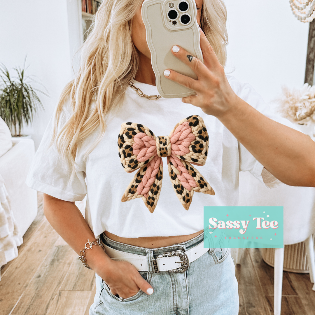 LEOPARD PINK FAUX YARN BOW COQUETTE **Preorder/Restock Ships in 5-10 biz days**
