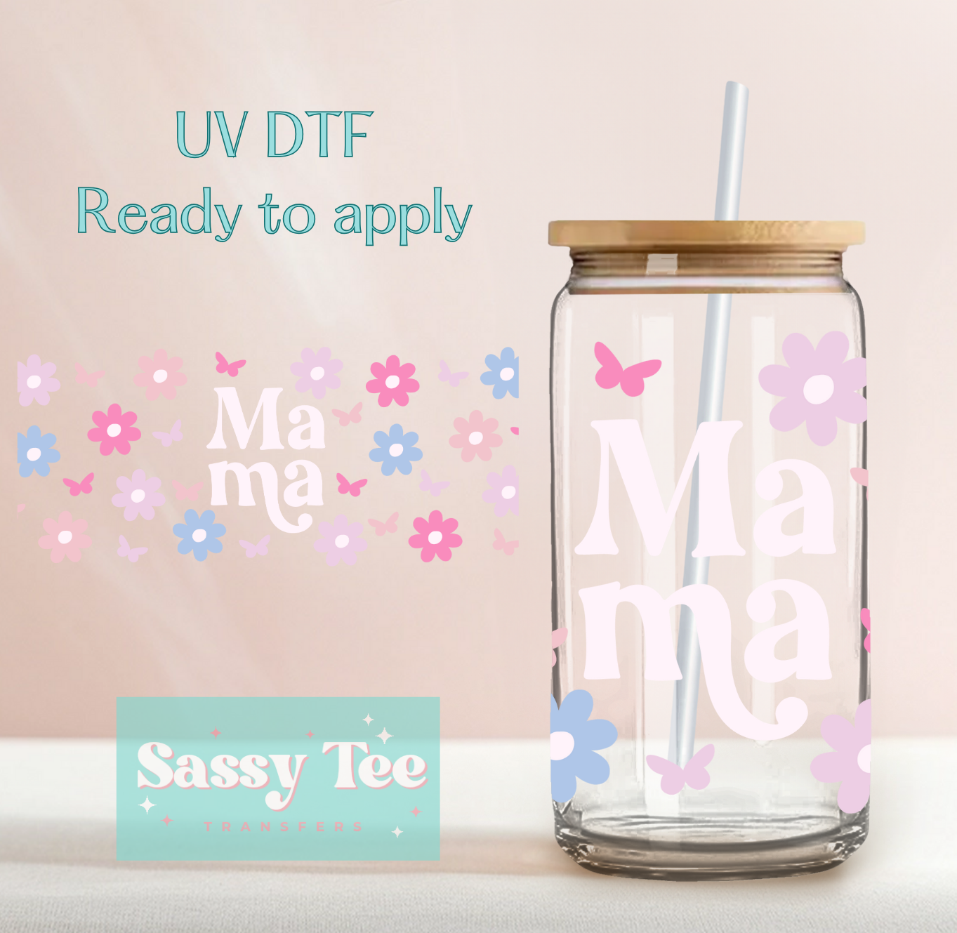 MAMA FLORAL BUTTERFLY UV DTF CUP WRAP