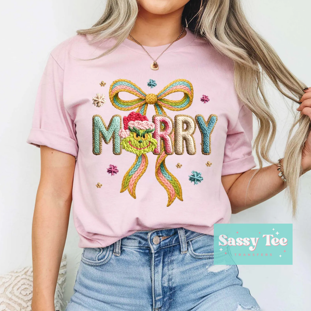 MERRY GREEN MAN FAUX KNIT BOW **Preorder/Restock Ships in 5-10 biz days**