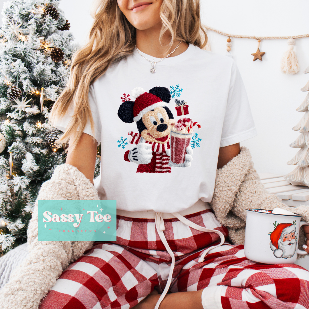 MOUSE GIRL CHRISTMAS PINK COCOA FAUX YARN **Preorder/Restock Ships in 5-10 biz days**