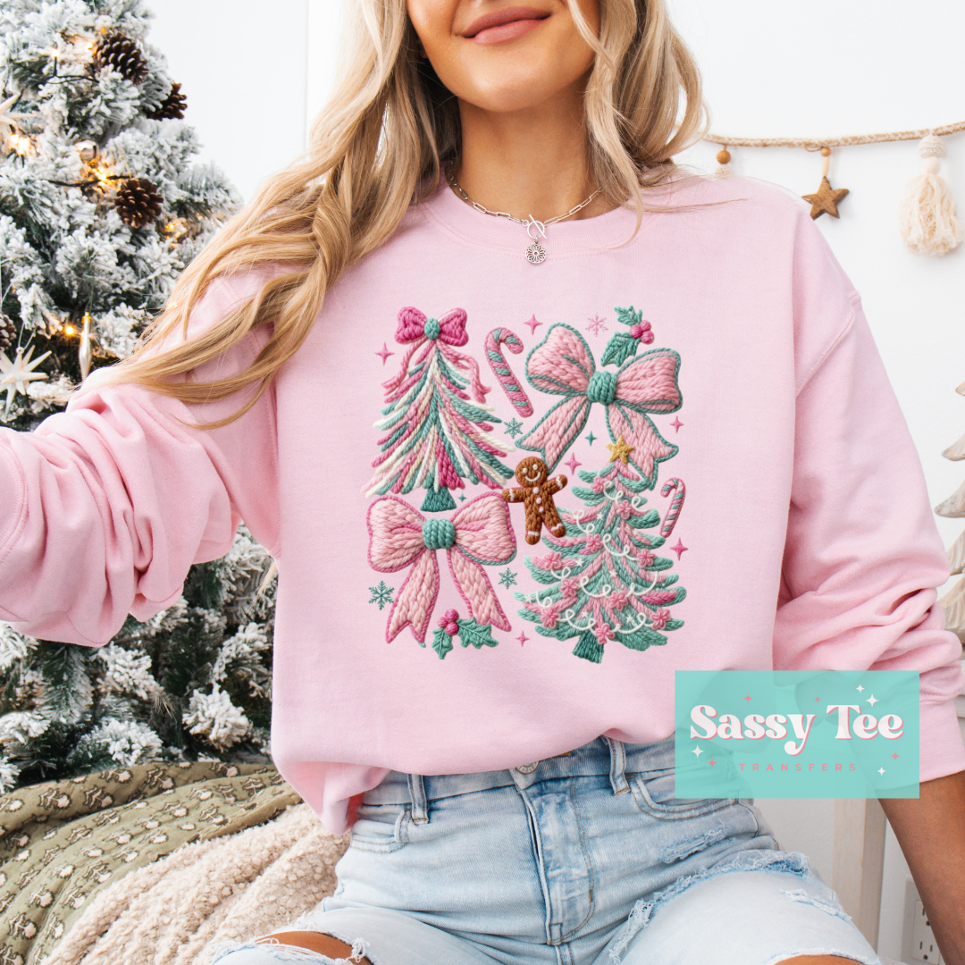 PINK MINT CHRISTMAS TREE BOW FAUX YARN **Preorder/Restock Ships in 5-10 biz days**